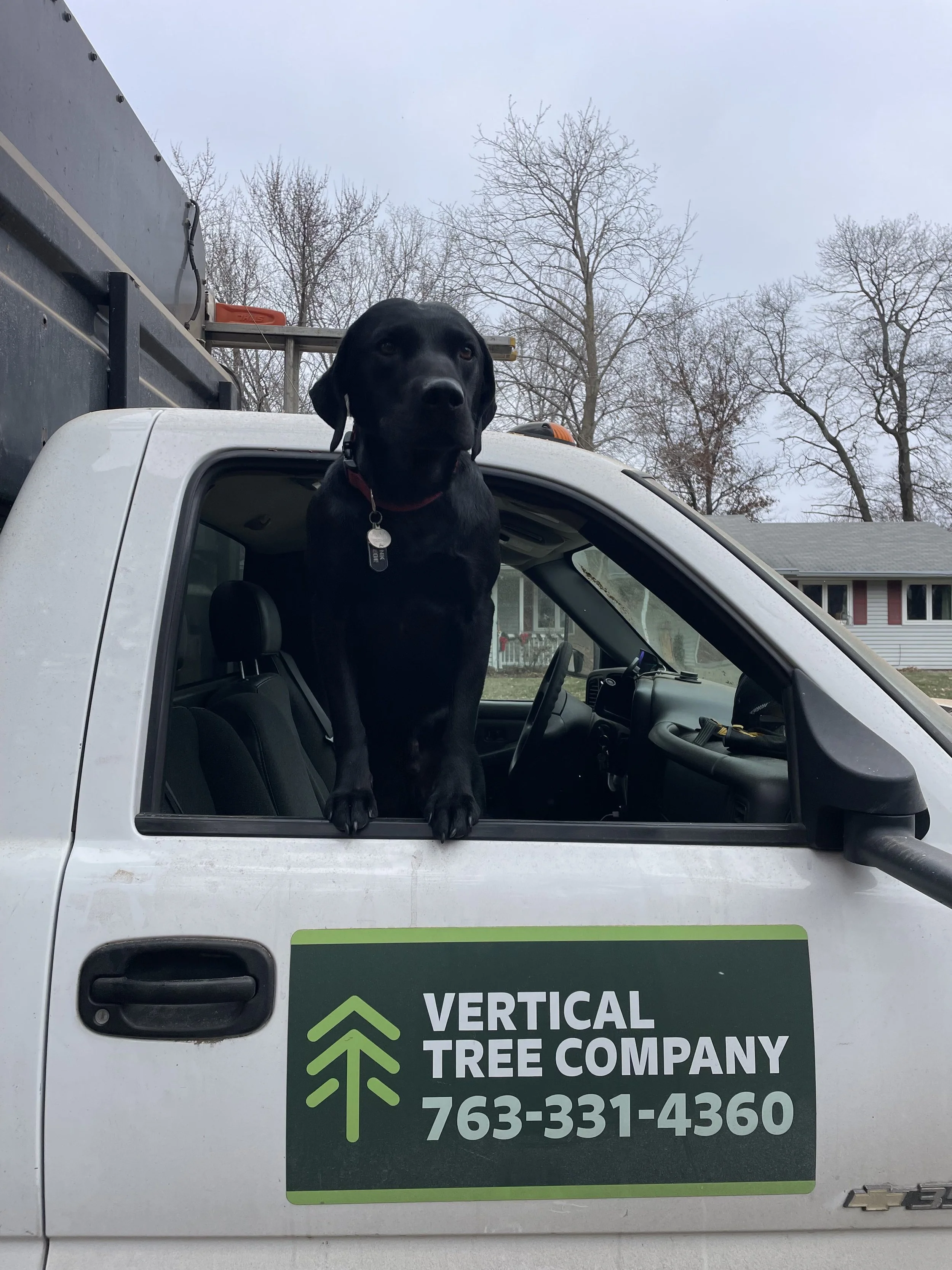 Hank has been on nearly every job site to date. He’s either dragging sticks and logs around or carefully watching guard of the trucks. Arguably our most valued team member, Hank is undoubtably the face of Vertical Tree Company.